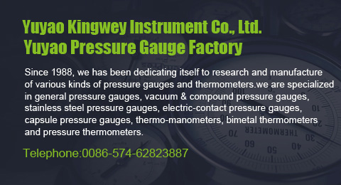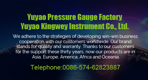 YUYAO PRESSURE GAUGE FACTORY was established in 1988, as a member of China National Pressure Gauge Association, our factory specialized in the production of pressure measurement instruments and temperature measurement instruments. The products came into being 16 series including: corrosion-proof, vibration-proof stainless steel pressure gauge, low pressure gauge, bimetal thermometer & pressure thermometer etc. The products are widely used in the various industry and fields such as: Petroleum, chemical industry, metallurgy, electric power, medicine, food, machinery, coal etc.